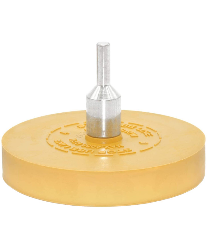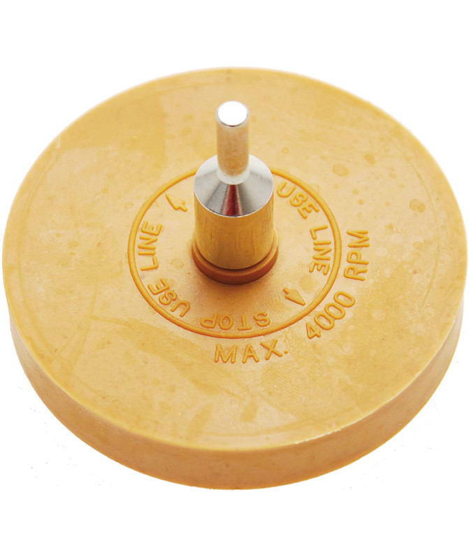 Krążek gumowy sprawdzi się jako element usuwający resztki kleju oraz taśmy po klejonych ciężarkach - dzięki temu znacznie poprawia wygląd obręczy, czy to w przypadku felg aluminiowych czy też stalowych. Krążek można szybko zamontować na wiertarce lub szlifierce wolnoobrotowej (do 4000 obr/min) przy użyciu adaptera. W kilka sekund krążek dokładnie usuwa uporczywe zanieczyszczenia oszczędzając nasz czas i pieniądze na środki chemiczne. Krążek wykonany jest z odpowiedniej mieszanki gumowej, dzięki czemu nie pozostawia praktycznie żadnych śladów na felgach. Dodatkowo, sam produkt nie powoduje zarysowań na felgach.