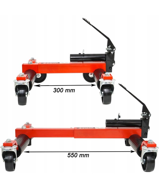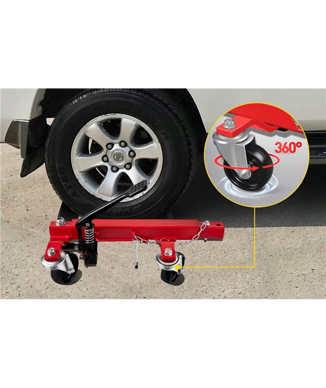 Rolki do przemieszczania samochodów z obrotem 360° i siłownikiem nożnym. Solidna konstrukcja, łatwość użycia. Idealne do warsztatu. Sprawdź!