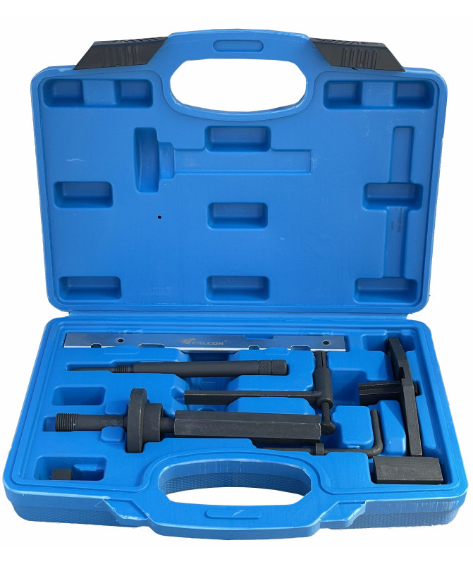Zestaw blokad przystosowanych do blokowania i ustawiania w prawidłowej pozycji rozrządu napędzanego łańcuchem. W zestawie znajduje się listwa blokująca wał rozrządu, trzpień blokujący, blokada koła zamachowego, ściągacz koła zębatego paliwowej pompy wtryskowej, narzędzie do ustawiania przedniej osłony łańcucha rozrządu, trzpień blokujący wał korbowy.