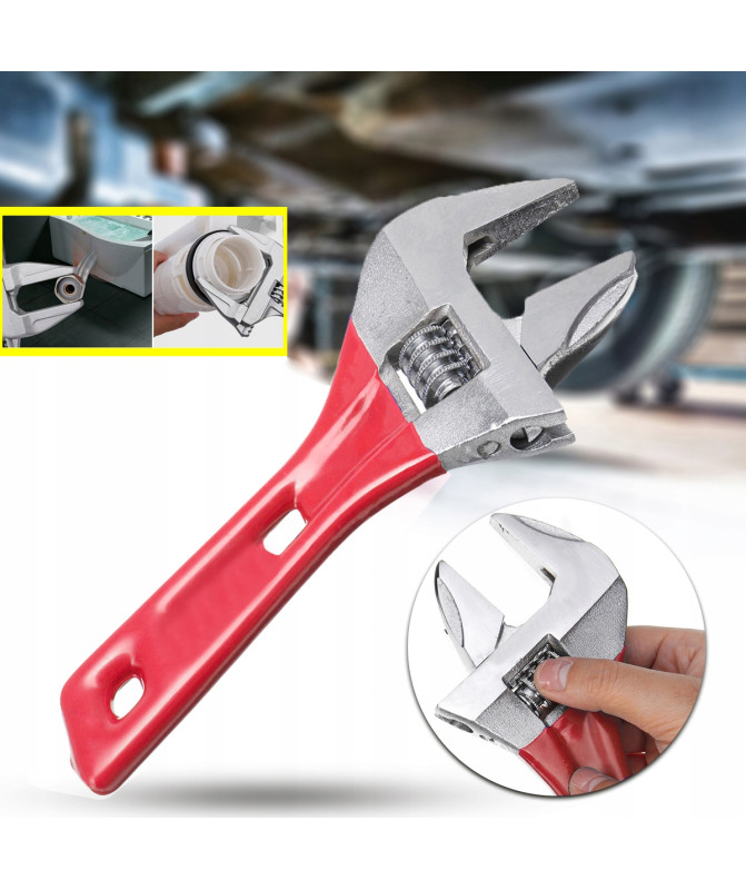 Klucz nastawny do prac w warsztacie, hydraulicznych, serwisowych. Klucz został wykonany ze stali chromowo-wanadowej CrV. Niewielkie rozmiary pozwolą na pracę w trudno dostepnych miejscach. Rękojeść klucza została wyłożona gumą dla pewnego i mocnego chwytu.
