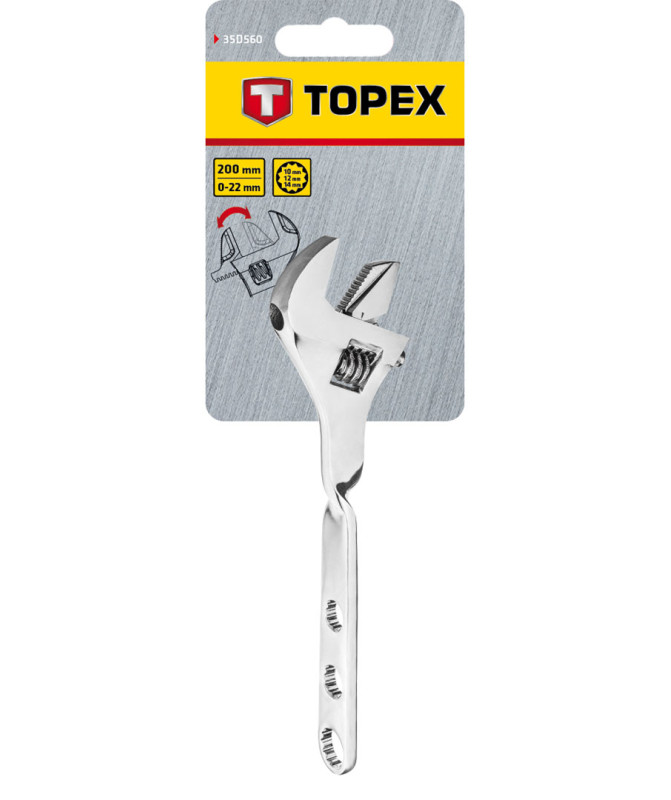 Klucz nastawny skręcony 200 mm, zakres 0-22 mm