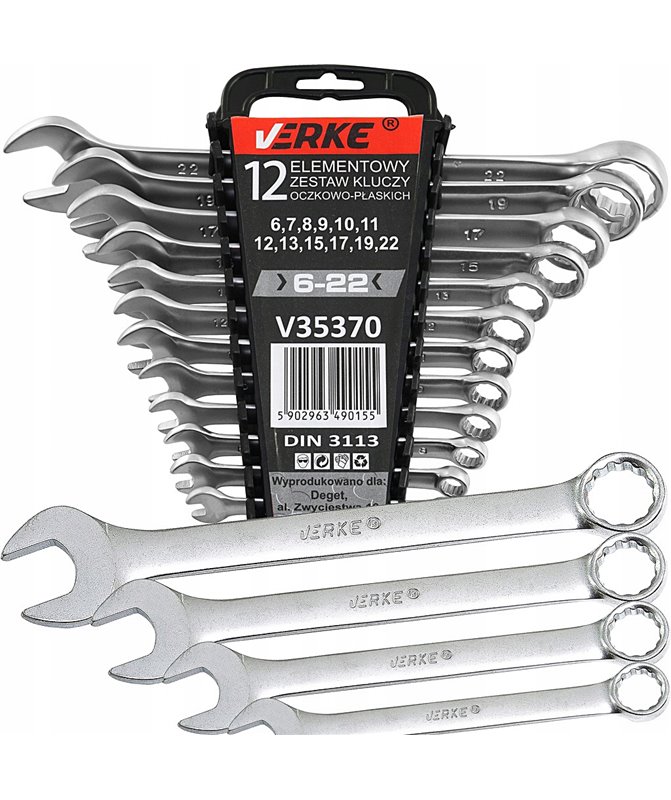 Klucze płasko-oczkowe 12 elementów 6-22 mm satyna Verke