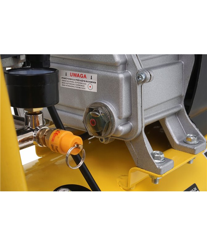 Kompresor olejowy z pompą jedno-tłokową i silnikiem 1,5 KM. Solidna konstrukcja, wysoka wydajność. Idealny do narzędzi pneumatycznych. Sprawdź!