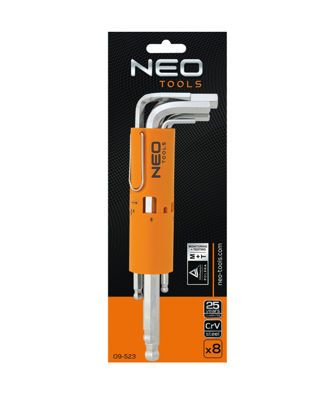 Klucze sześciokątne, długie, kuliste 2.5-10 mm, zestaw 8 szt.