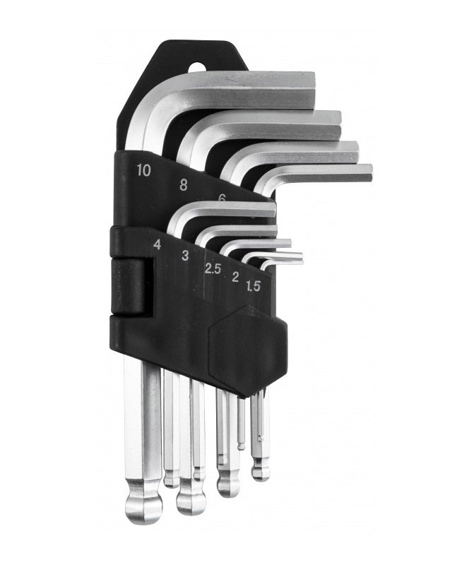 - zestaw 9 sztuk kluczy imbus - 1,5mm, 2mm, 2,5mm, 3mm, 4mm, 5mm, 6mm, 8mm, 10mm