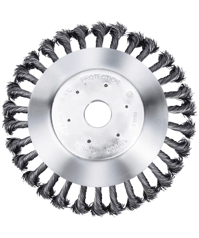 - Tarcza szczotkowa z wysokiej jakości stali odpornej na obciążenia siły odśrodkowej oraz bardzo wysokie obroty dochodzące nawet do 10 tys/min.