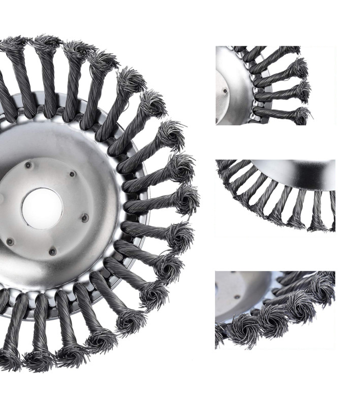 Tarcza szczotkowa z wysokiej jakości stali może być stosowana bezpośrednio do urządzeń typu kosa lub podkaszarka do trawy, zarówno spalinowych jak i elektrycznych. Niezastąpiona do szorowania kostki brukowej, wyrywania chwastów spomiędzy szczelin chodników i kostki, czyszczenia powierzchni metalowych.