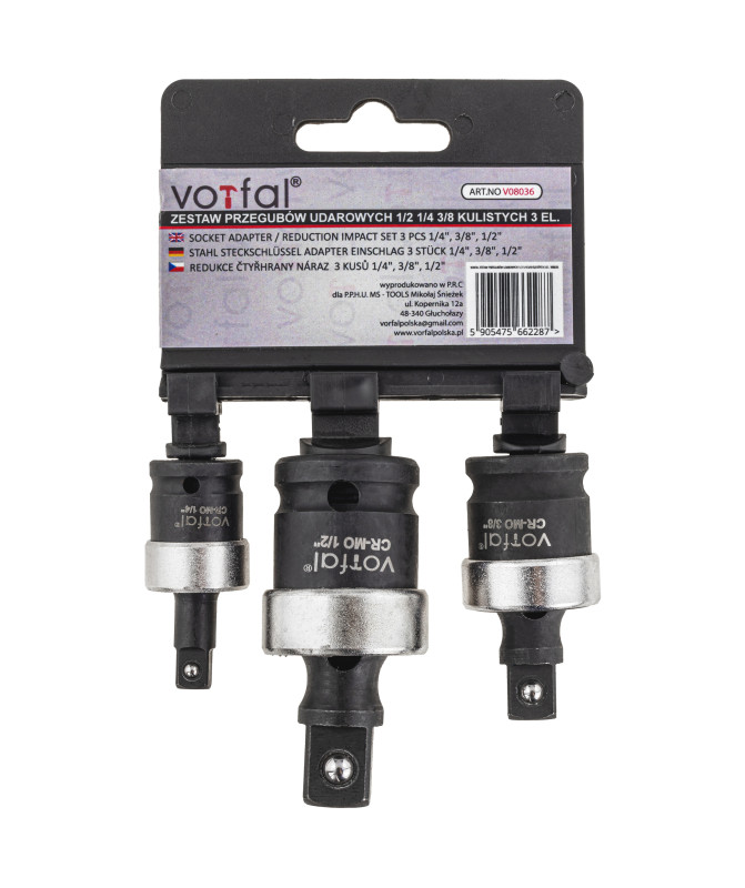Przegub kulowy kulisty udarowy nasadki trzpienie 1/2 1/4 3/8 CR-MO 3 szt