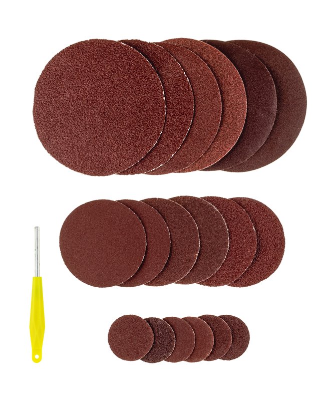 - Papier ścierny: 15 sztuk (20 mm, 50 mm, 75 mm)