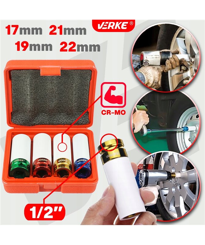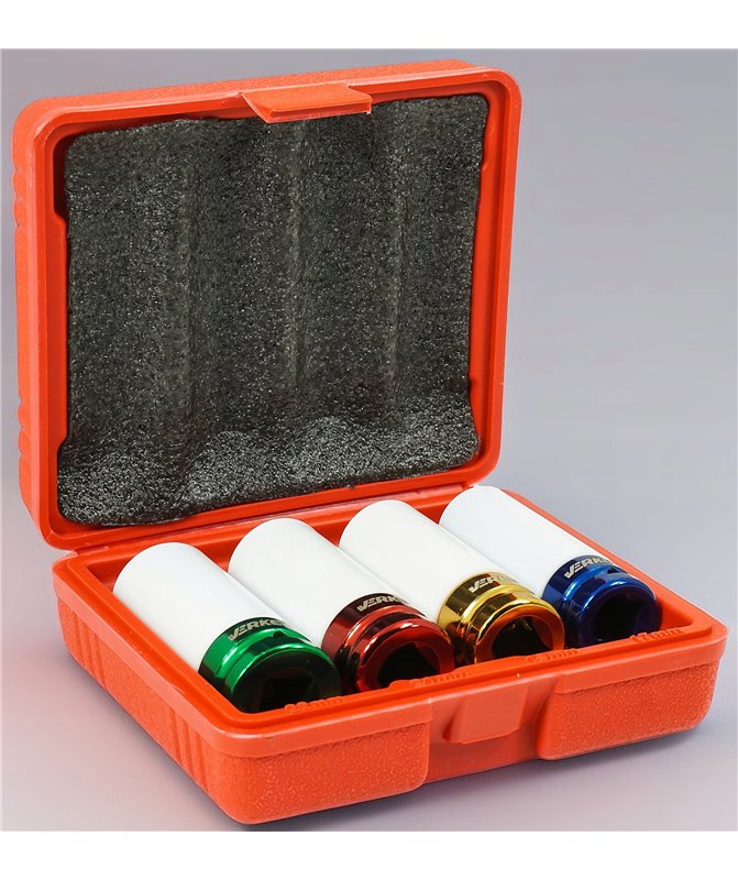 Nasadki udarowe marki VERKE wykonane ze stali chromowo-molibdenowej do felg aluminiowych.
