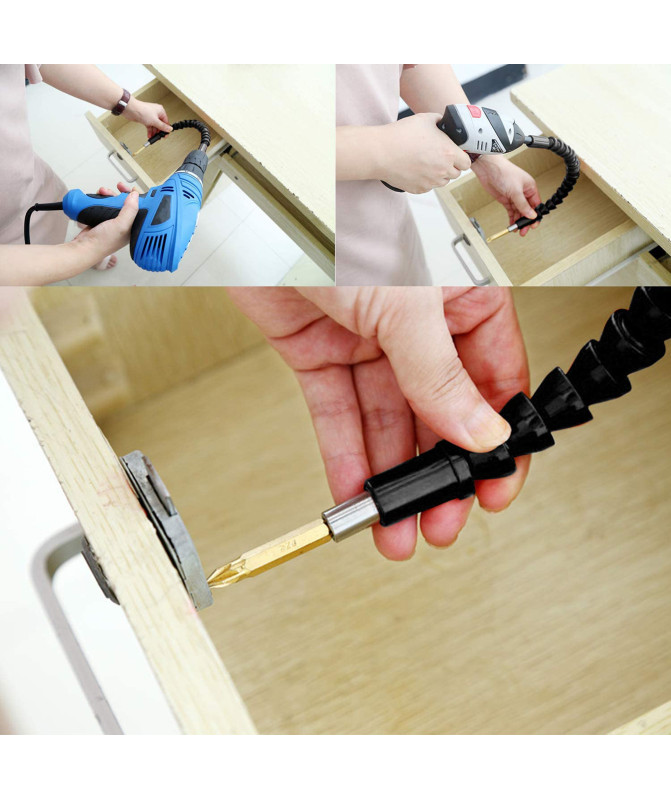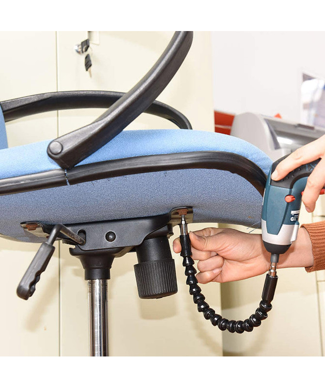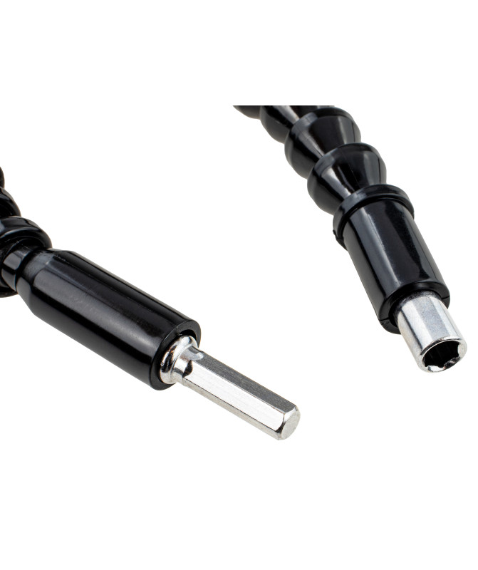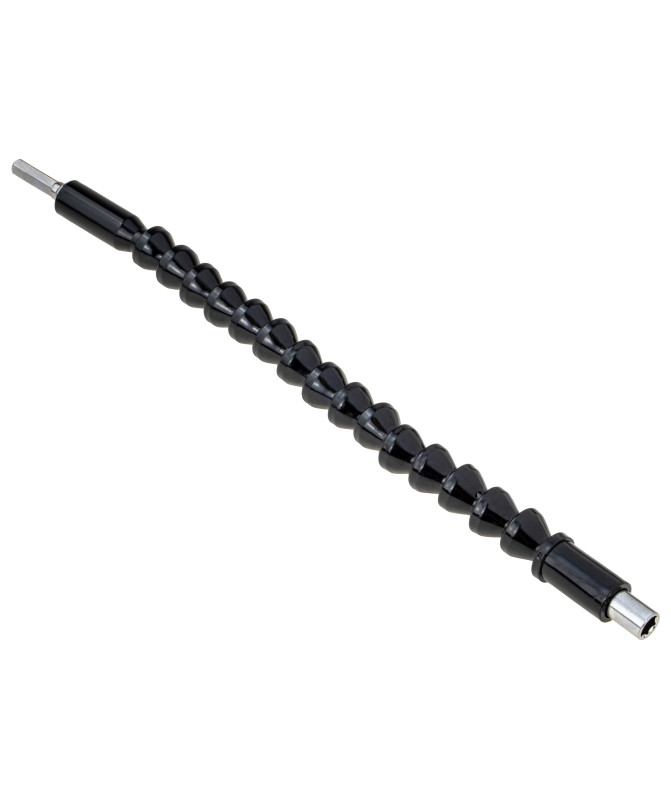 Przedłużka przyda się, gdy będziesz chciał przewiercić śrubę w trudno dostępnym miejscu dla wiertarki. Przedłużka jest elastyczna dzięki czemu możesz wygiąć ją w taki sposób, aby umieścić końcówkę w odpowiednim miejscu. Końcówka przedłużacza zaczyna się kręcić i pobudza do ruchu sprężyny co pozwala skręcić śrubę. Produkt jest wykonany z materiałów najwyższej jakości, dlatego jest solidny i trwały.