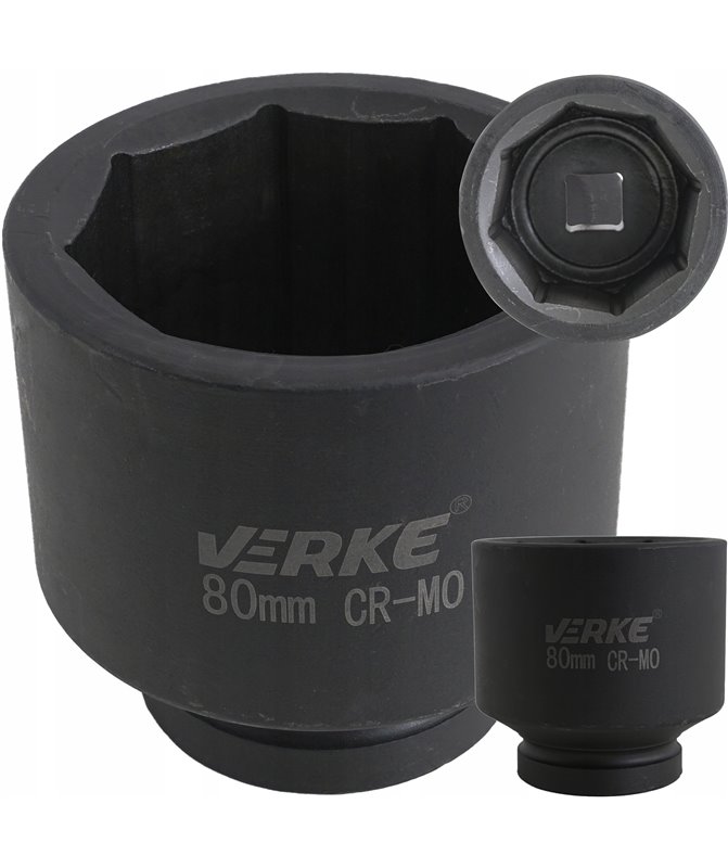 Specjalistyczne nasadki udarowe VERKE, współpracują z urządzeniami pneumatycznymi, które pracują w bardzo ciężkich warunkach pod zmiennymi obciążeniami. Nasadka wykonano ze stali chromowo molibdenowej, która gwarantuje bardzo długą żywotność. Stal chromowo molibdenowa to stal stopowa, która posiada dwukrotnie większa wytrzymałość na rozciąganie od zwykłej stali węglowej oraz trzykrotnie wyższą granicę plastyczności. Te cechy powodują, że nasadki firmy VERKE udarowe przez wydłużony czas zachowują swój nominalny wymiar oraz nie pękają pod wpływem pracy udarowej. Dzięki temu jest dobrym rozwiązaniem zarówno do profesjonalnego warsztatu mechanicznego, jak i przydomowego garażu.