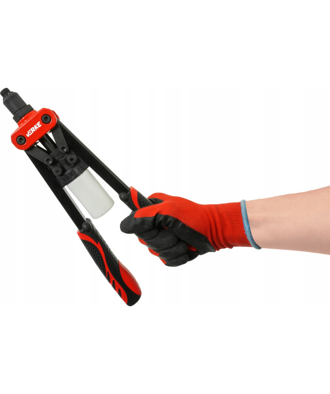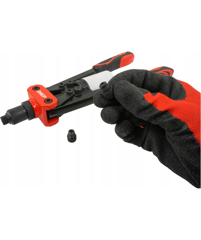 Nitownica ręczna przeznaczona do zrywalnych nitów aluminiowych, miedzianych, stalowych i nierdzewnych w zakresie od 3,2 mm do 4,8 mm. Korpus i rękojeść wykonane ze stali węglowej. Mechanizm ściągający posiada trzy szczęki. Dzięki odpowiedniej grubości ścianek i właściwie dobranej długości ramion używamy nitownicy bez użycia dużych nakładów sił. Zbiornik na zerwane rdzenie nitów pozwala utrzymać miejsce pracy w czystości.
