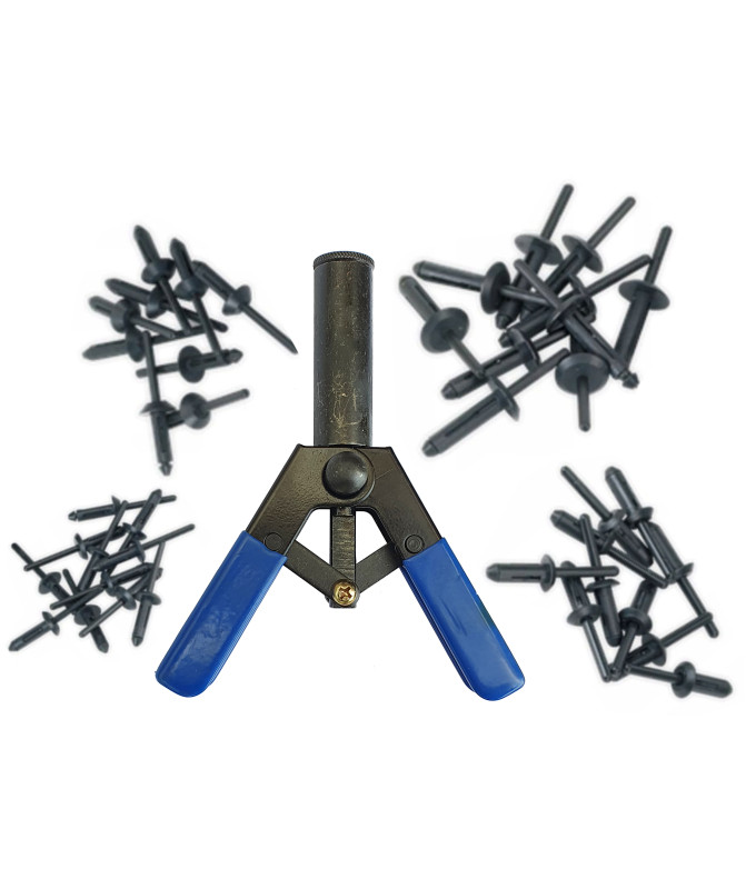 Nitownica do nitów plastikowych z zestawem 40 nitów w czterech wielkościach służy do mocowania listew plastikowych, listew drzwiowych, nadkoli, osłon silnika, tapicerki samochodowej, odbojników oraz delikatnych elementów w okolicach silnika i kabiny samochodu. Nitownica posiada zwartą budowę, długość zaledwie 15 cm, system dwu-szczękowy oraz wykonana jest z wytrzymałej walcowanej stali stopowej.