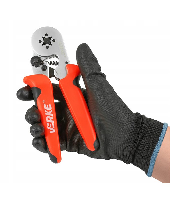 Praska do zaciskania końcówek izolowanych oraz nieizolowanych, pojedynczych i podwójnych. CZWOROKĄTNY system zacisku, dzięki któremu do zacisku nie trzeba używać dużej siły
