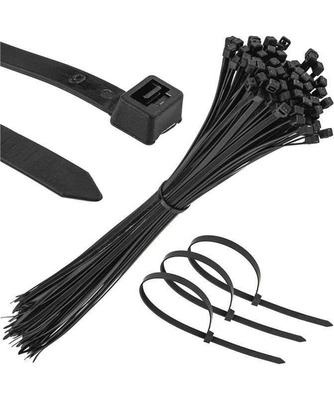 Opaski zaciskowe 4.8 x 450 mm, w kolorze czarnym, pakowane po 100 szt. Przeznaczone są do łączenia wiązek kabli elektrycznych, przewodów, rurek, węży lub też do szybkich doraźnych naprawach. Proste w montażu. Posiadają dużą odporność na zrywanie. Dostępne są w wielu rozmiarach oraz kolorach. Gęste ząbki na całej długości pozwalają na precyzyjne dopasowanie pętli opaski do rozmiaru wiązki. Opaski możemy zaciskać ręcznie lub za pomocą specjalnego przyrządu.