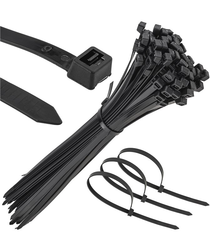 Opaski zaciskowe 7.6 x 380 mm, w kolorze czarnym, pakowane po 100 szt. Przeznaczone są do łączenia wiązek kabli elektrycznych, przewodów, rurek, węży lub też do szybkich doraźnych naprawach. Proste w montażu. Posiadają dużą odporność na zrywanie. Dostępne są w wielu rozmiarach oraz kolorach. Gęste ząbki na całej długości pozwalają na precyzyjne dopasowanie pętli opaski do rozmiaru wiązki. Opaski możemy zaciskać ręcznie lub za pomocą specjalnego przyrządu.