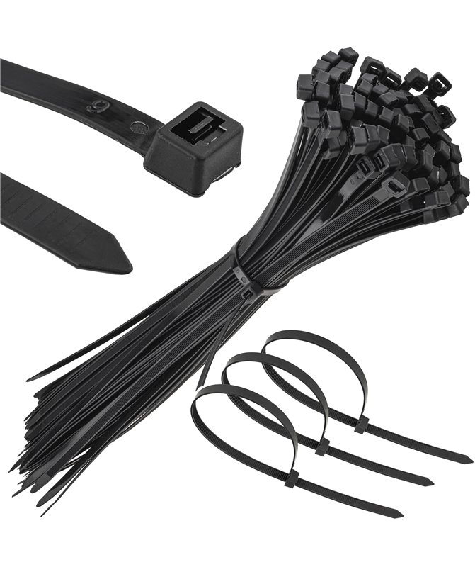 Opaski zaciskowe 8.8 x 550 mm, w kolorze czarnym, pakowane po 100 szt. Przeznaczone są do łączenia wiązek kabli elektrycznych, przewodów, rurek, węży lub też do szybkich doraźnych naprawach. Proste w montażu. Posiadają dużą odporność na zrywanie. Dostępne są w wielu rozmiarach oraz kolorach. Gęste ząbki na całej długości pozwalają na precyzyjne dopasowanie pętli opaski do rozmiaru wiązki. Opaski możemy zaciskać ręcznie lub za pomocą specjalnego przyrządu.