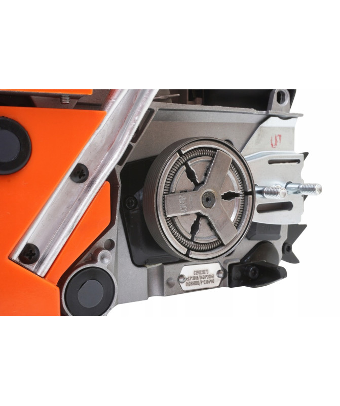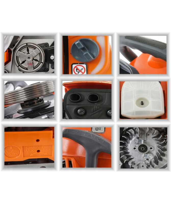 - Automatyczny system smarowania łańcucha: Ze względu na to, że łańcuch jest automatycznie smarowany przez specjalny system nie musimy robić tego ręcznie Takie rozwiązanie pozwala nam zaoszczędzić dużo czasu, gdyż piła nie wymaga specjalistycznej konserwacji.