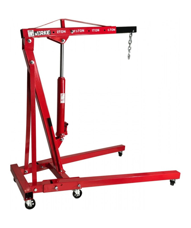 Profesjonalny, praktyczny, mobilny i składany żuraw przydatny w warsztatach, serwisach samochodowych do manipulacji z ciężkim ładunkiem. Solidna stalowa konstrukcja umożliwia podnoszenie elementów o wadze do 2t. Posiada wysuwane ramię nastawiane w 4 pozycjach oraz 2 obrotowe i 4 stałe stabilne koła zapewniają łatwe manewrowanie żurawiem. Urządzenie wykonane z bardzo dobrych materiałów co sprawia, że jest to mocna, dokładnie wykonana konstrukcja zapewniająca długotrwałą i bezpieczną prace.Urządzenie można szybko złożyć i przemieścić. Żuraw jest tak skonstruowany, że po złożeniu zajmuje bardzo mało miejsca.