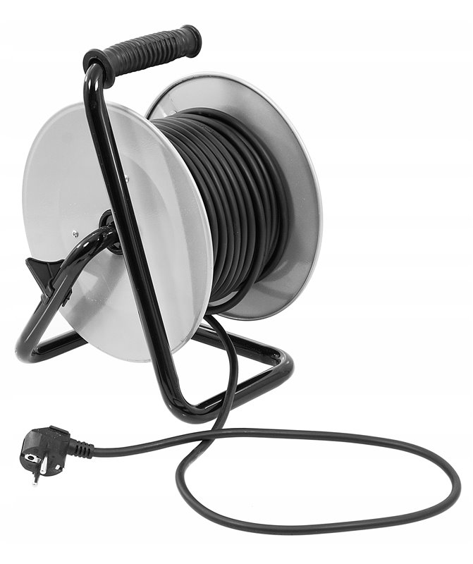 Przedłużacz został wykonany z najwyższej jakości materiałów, dlatego jego bęben, a także stelaż jest metalowy, co znacznie zwiększa wytrzymałość przydatną podczas ciężkich zadań na budowie czy magazynie.