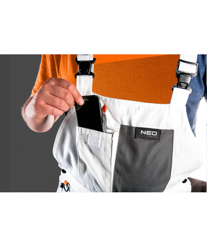 Spodnie robocze na szelkach, białe, HD, rozmiar XL/56