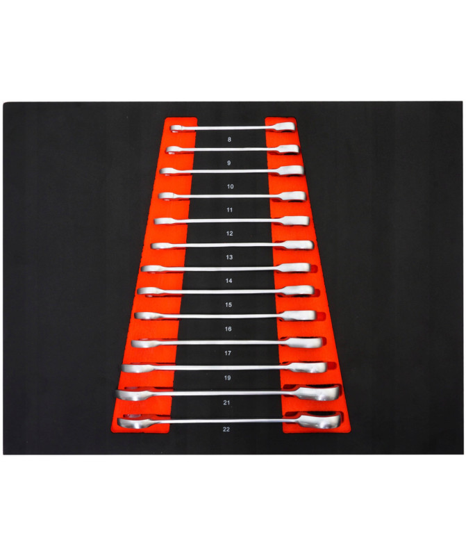 - klucze płasko-oczkowe z grzechotką - 8, 9, 10, 11, 12, 13, 14, 15, 16, 17, 19, 21, 22 mm