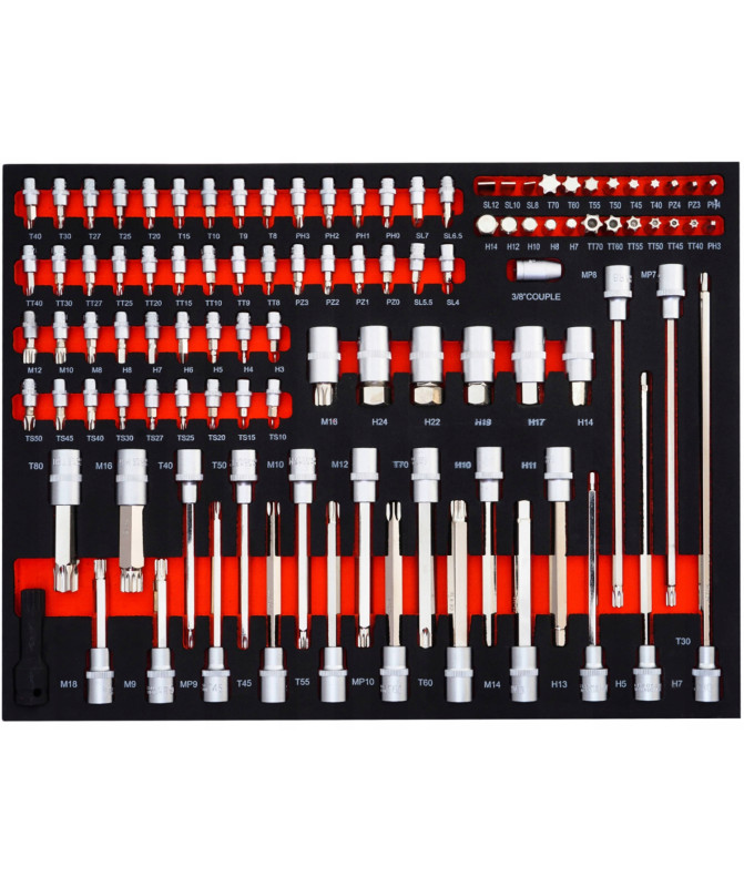 - 24 szt. bity: 6150xH8x36L płaskie - SL8-10-12, krzyżak - PH3-4-PZ3-4, torx - T40-45-50-55-60-70, imbus - H7-8-10-12-14, torx - T40-45-50-55-60-70