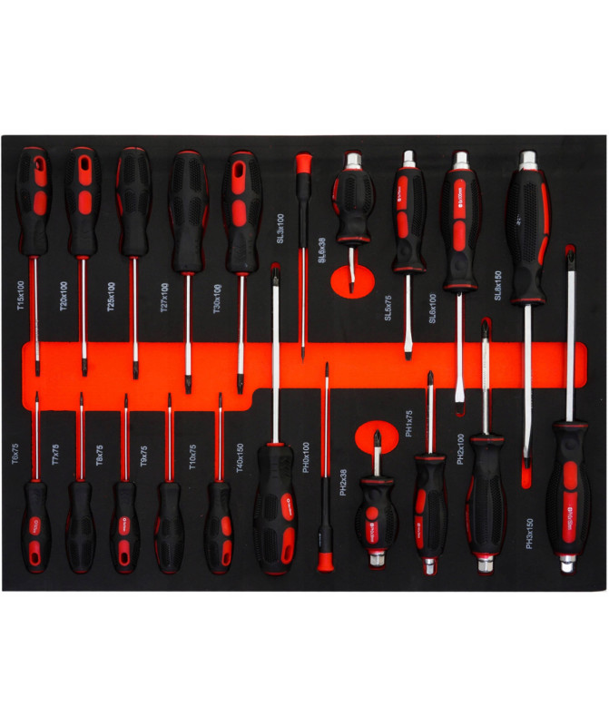 - wkrętaki torx - T6*75, T7*75, T8*75, T9*75, T10*75, T15*100, T20*100, T25*100, T27*100, T30*100, T40*150