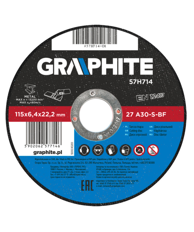 Tarcza szlifierska do metalu 115 x 6.4 x 22.2 mm, 27 A30-S-BF