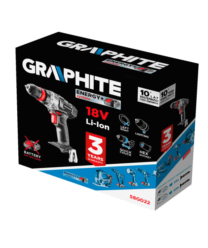 Wiertarko-wkrętarka akumulatorowa Energy+ 18V, Li-Ion, zdejmowany uchwyt 10 mm, bez akumulatora