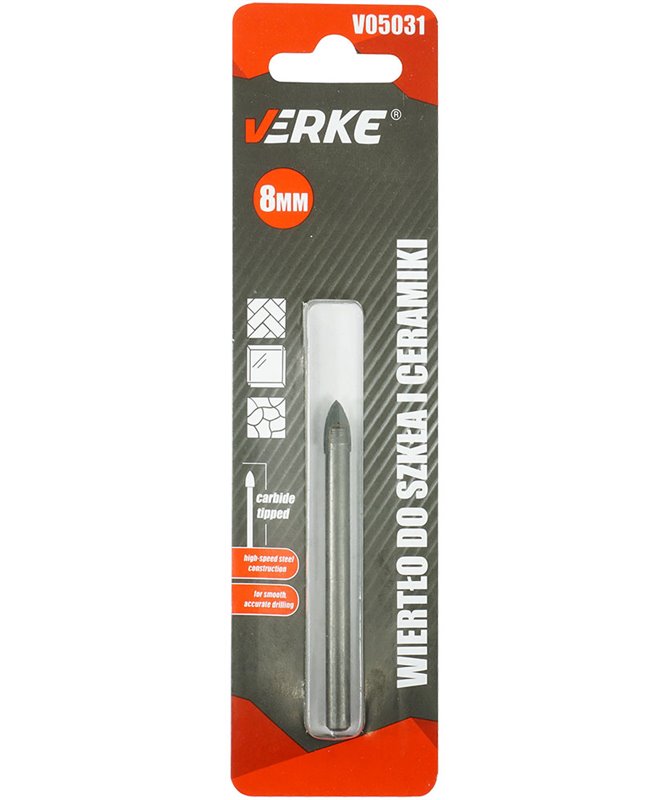 Specjalistyczne wiertło ceramiczne wyposażone w głowicę z węglików spiekanych i konstrukcję ze stali szybkotnącej, dzięki czemu idealnie nadaję się do gładkiego, dokładnego wiercenia w płytkach, szkle, ceramice, lustrach.