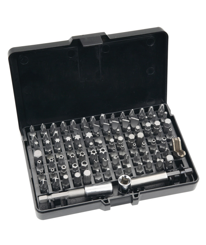 | Końcówki wkrętakowe w zestawie | 25 mm, stal S2, rozmiary: płaskie 3, 4, 4.5, 5.5, 6, 6.5, 7, 8 mm, krzyżowe PH0, PH1, 5 x PH2, PH3, PZ0, 2 x PZ1, 5 x PZ2, PZ3, Torx T8, T10, T15, T20, T25, T27, T30, T40, T45, Torx z otworem TT8, TT10, TT15, TT20, TT25, TT27, TT30, TT35, TT40 |