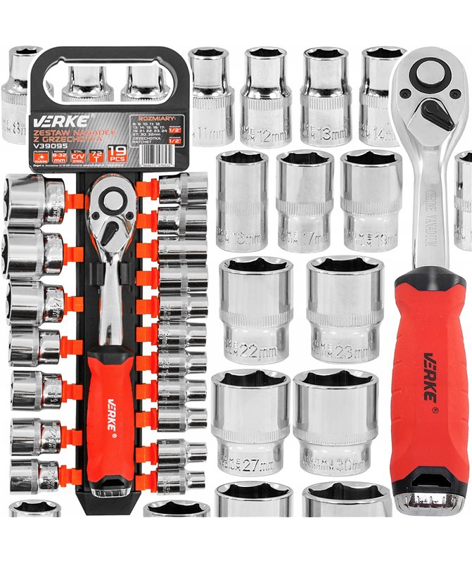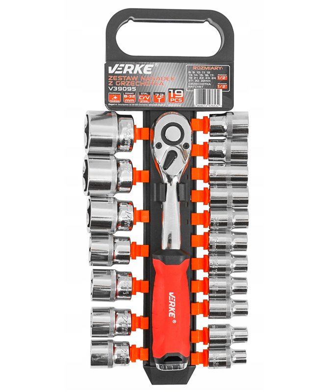 Zestaw nasadek z grzechotką 72t, 1/2", 19 el. Verke