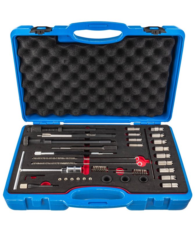 Zestaw przeznaczony do czyszczenia gniazd wtryskiwaczy z nagaru i korozji. Czyszczenie gniazda jest konieczne przed każdym montażem wtryskiwacza. Zapobiega to nieszczelnościom, które powodują wypalanie gniazda i niszczenie bloku silnika.